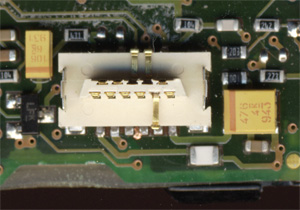 If you look at the top picture in this section, you'll see that I cut 4 of the pins. After grounding the control pins on the radio board, the CPU board does not operate. I.e, the LCD doesn't come on. My idea was to allow the CPU board to run, although for my purposes it didn't really matter. It was more for aesthetic purposes. The piece of electrical tape I put over the pins for insulation didn't hold up anyway. The radio board operates regardless. Not so with the Motorola Advisor II however, where you really need to disable the control pins (see below).